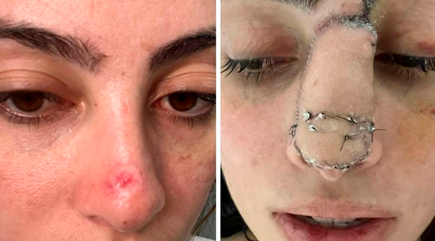 Com a notícia, Juliana passou por uma cirurgia delicada para eliminar todas as células cancerígenas possíveis, resultando na remoção da região afetada do nariz.