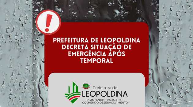 A Prefeitura de Leopoldina, por meio da Secretaria de Educação, informa que não haverá aula na Creche Gato de Botas nesta quarta-feira, dia 5, devido aos impactos da forte chuva que atingiu o município na tarde desta terça-feira, dia 4, acompanhada de rajadas de vento e granizo.