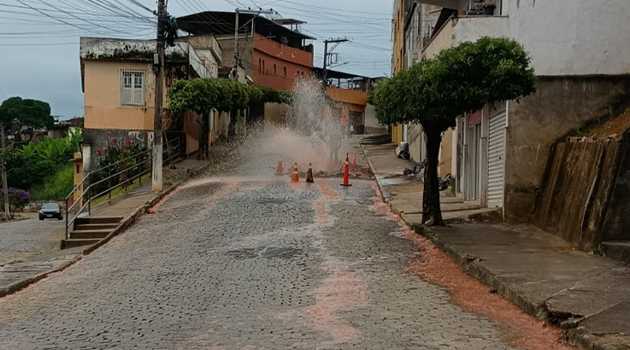 Problema na Ladeira Riachuelo, no Bairro Alto do Cemitério em Leopoldina, causa desperdício de água.