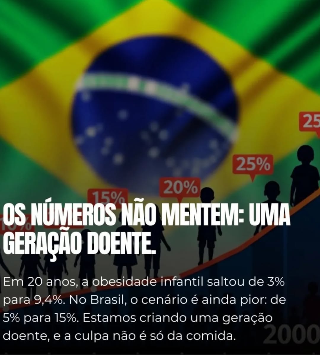 Globalmente, a taxa de obesidade infantil saltou de 3% para 9,4% neste século. O cenário no Brasil, no entanto, é ainda mais alarmante. Enquanto a média mundial triplicou, os índices brasileiros praticamente quadruplicaram, evoluindo de 5% para 15% no mesmo período. Especialistas classificam a situação como uma "epidemia de proporções catastróficas".