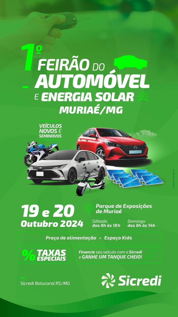 Vem aí o 1º Feirão do Automóvel e da Energia Solar do Sicredi na cidade de Muriaé .