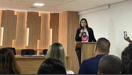 A escrivã Ana Rosa Campos, lotada em Manhuaçu e responsável pela criação do projeto Chame a Frida, prestigiou o evento juntamente com autoridades municipais e representantes da Rede de Enfrentamento à Violência de Gênero de Muriaé.