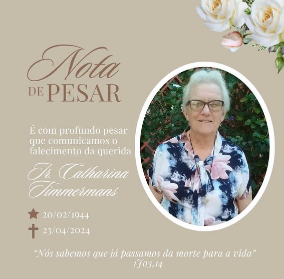 Comunicamos com pesar o falecimento da querida Irmã Catharina Timmermans, de 80 anos.