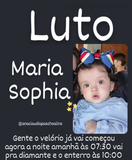 Com profundo pesar, informamos o falecimento da pequena Maria Sophia.