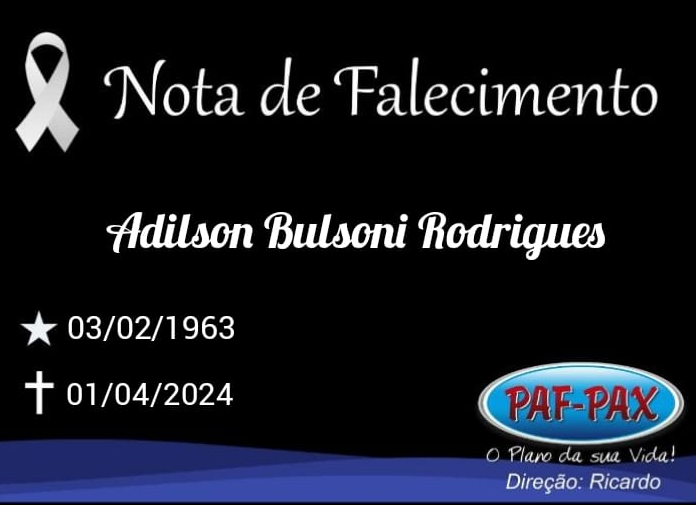 Comunicamos com pesar o falecimento de Adilson Bulsoni Rodrigues, de 61 anos.