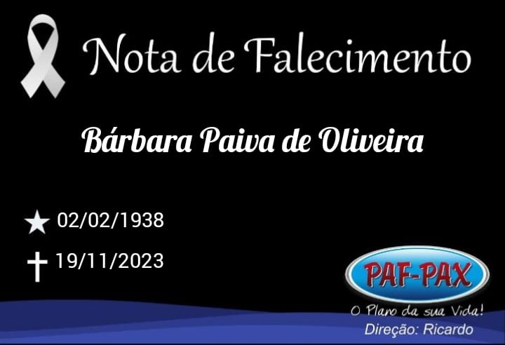 Comunicamos com pesar o falecimento de Bárbara Paiva de Oliveira.