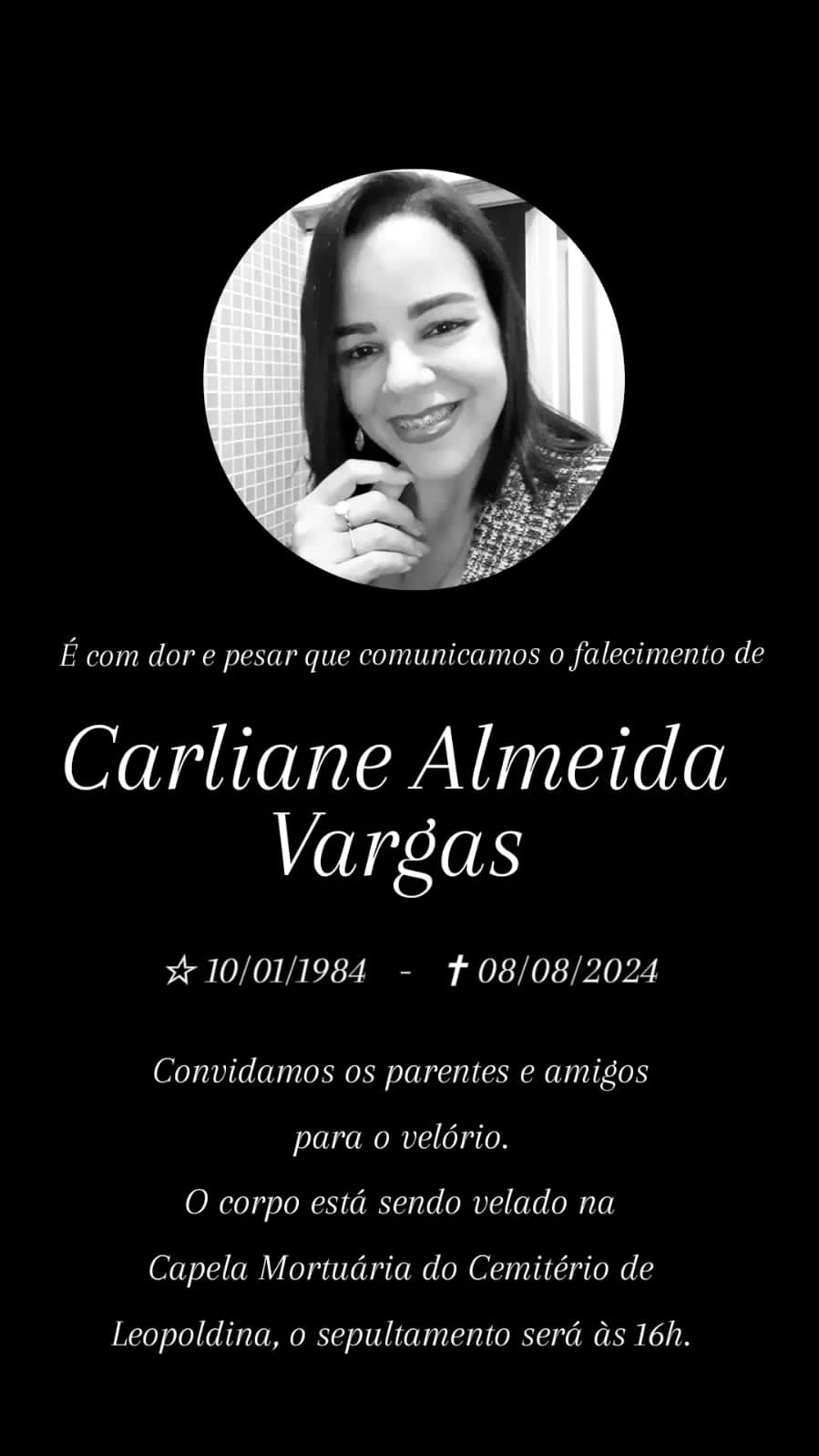 Comunicamos com pesar o falecimento de Carliane Almeida Vargas, de 40 anos.