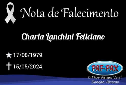 Comunicamos com pesar o falecimento de Charla Lanchini Feliciano.