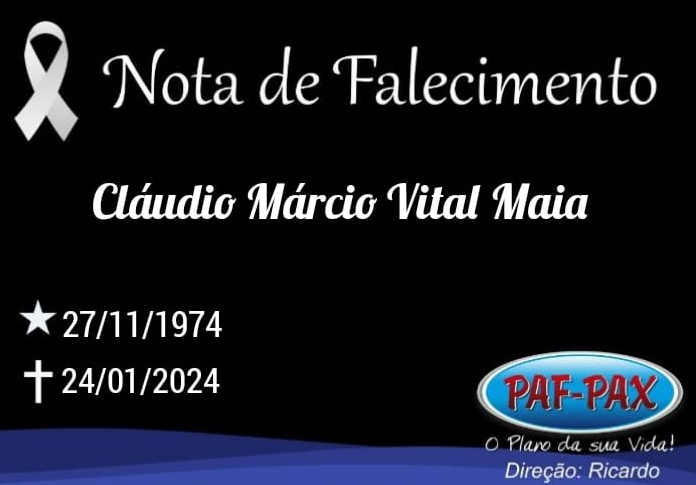 Comunicamos com pesar o falecimento de Cláudio Márcio Vital Maia.