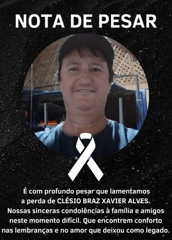 Comunicamos com pesar o falecimento de Clésio Braz Xavier Alves (Cresinho), do Varandão São Lourenço, o Bar do Cresinho na Usina Maurício.