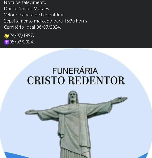 Comunicamos com pesar o falecimento de Danilo Santos Moraes, de 26 anos.