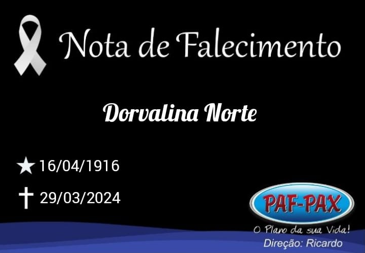 Comunicamos com pesar o falecimento de Dorvalina Norte, de 107 anos.