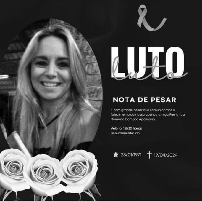 Comunicamos com pesar o falecimento de Fernanda Romano Campos Apolinário, de 53 anos.