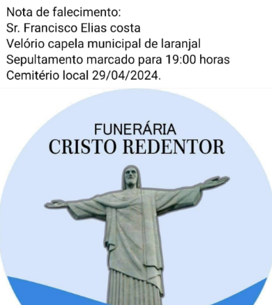 O sepultamento será na segunda-feira (29 de abril), às 19:00h, no Cemitério de Laranjal.