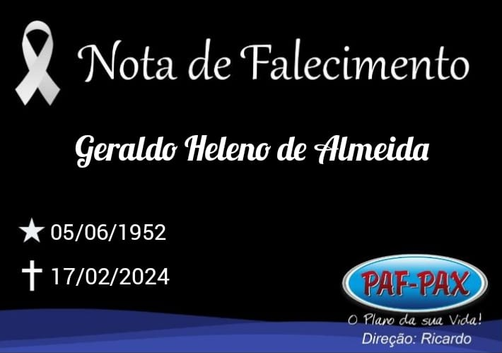 Comunicamos com pesar o falecimento de Geraldo Heleno de Almeida, de 71 anos.