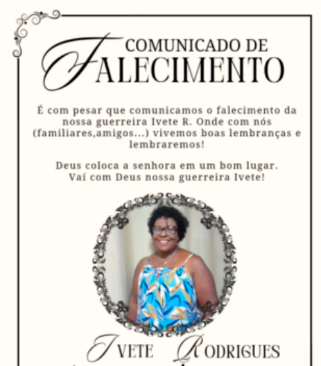 Comunicamos com pesar o falecimento de Ivete Rodrigues, de 66 anos.