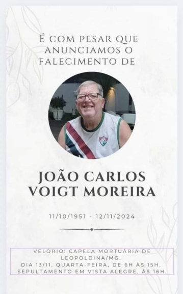Com profundo pesar, informamos o falecimento de João Carlos Voigt Moreira, de 73 anos.