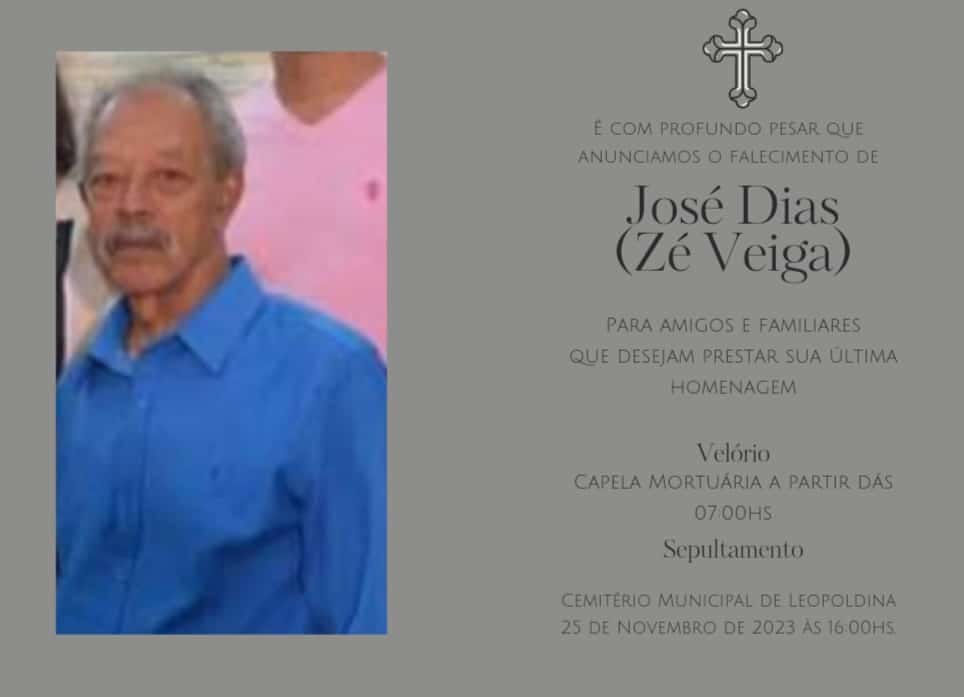 O sepultamento será as 16:00h do sábado (25 de novembro), no Cemitério Municipal de Leopoldina.