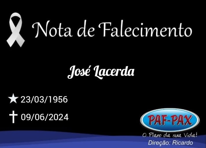 Comunicamos com pesar o falecimento de José Lacerda, de 68 anos.