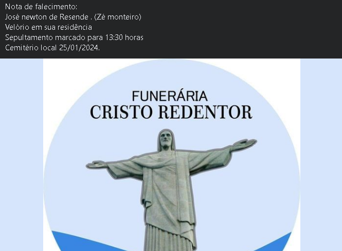 Comunicamos com pesar o Falecimento de José Newton de Resende (Zé monteiro).