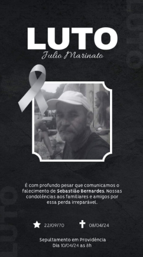 O sepultamento será realizado na quarta-feira (10 de abril), às 08:00h, em Providência.