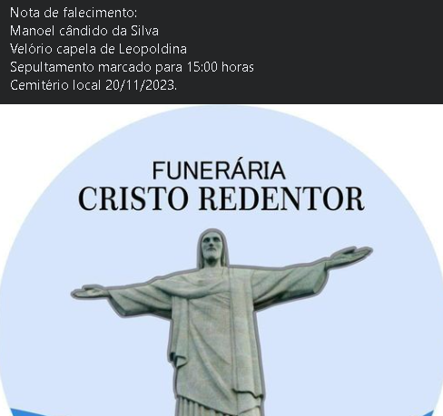 O sepultamento está marcado para as 15:00h da segunda-feira (20 de novembro), no Cemitério local.