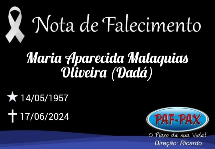 Comunicamos com pesar o falecimento de Maria Aparecida Malaquias Oliveira (Dadá)