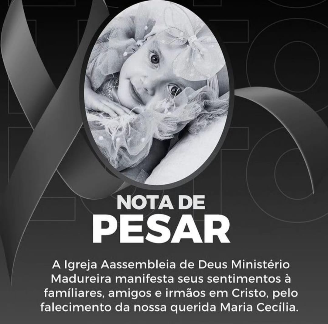 Comunicamos com pesar o falecimento de Maria Cecília, de 01 ano e 5 meses.