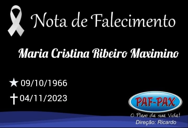 Comunicamos com pesar o falecimento de Maria Cristina Ribeiro Maximino.