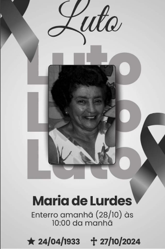 Com profundo pesar, informamos o falecimento de Maria de Lourdes, de 91 anos.