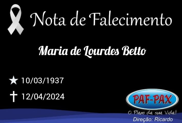 Comunicamos com pesar o falecimento de Maria de Lourdes Betto, de 87 anos.