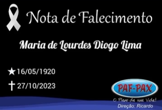 Comunicamos com pesar o falecimento de Maria de Lourdes Diogo Lima.