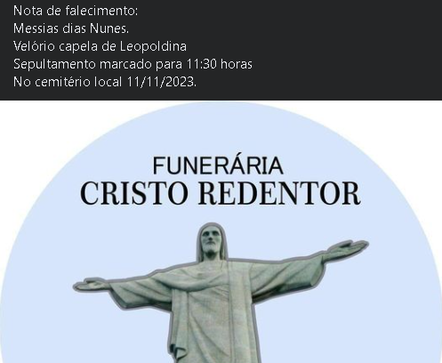 Comunicamos com pesar o falecimento de Messias Dias Nunes.
