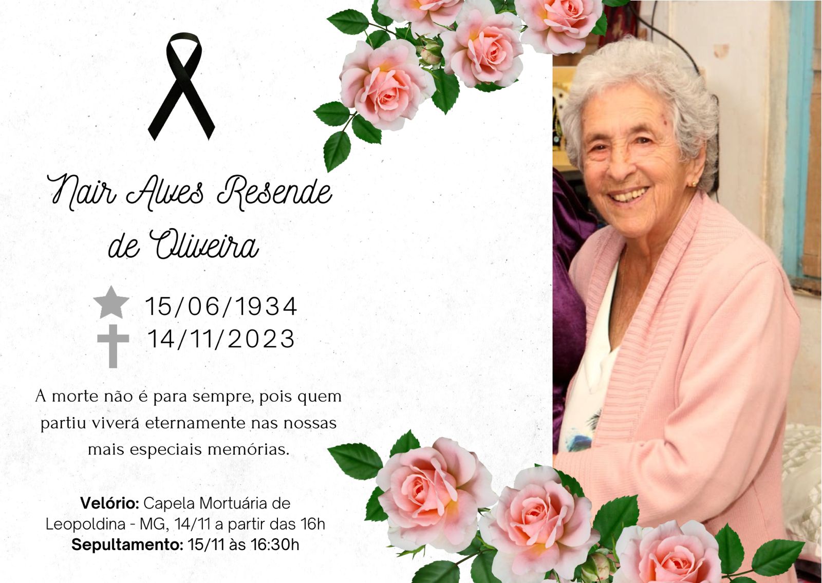 Comunicamos com pesar o falecimento de Nair Alves Resende de Oliveira.