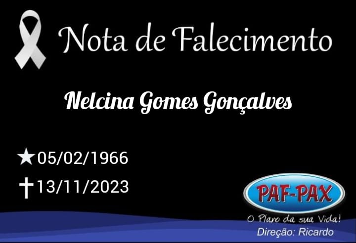 Comunicamos com pesar o falecimento de Nelcina Gomes Gonçalves.