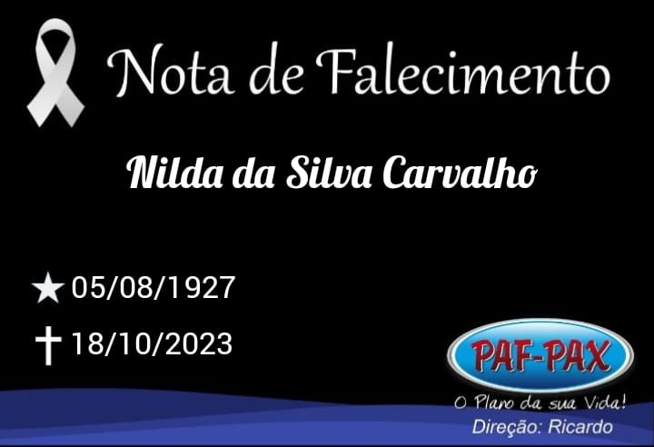 Comunicamos com pesar o falecimento de Nilda da Silva Carvalho.