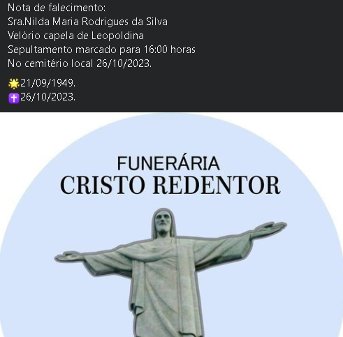 Comunicamos com pesar o falecimento de Nilda Maria Rodrigues da Silva.