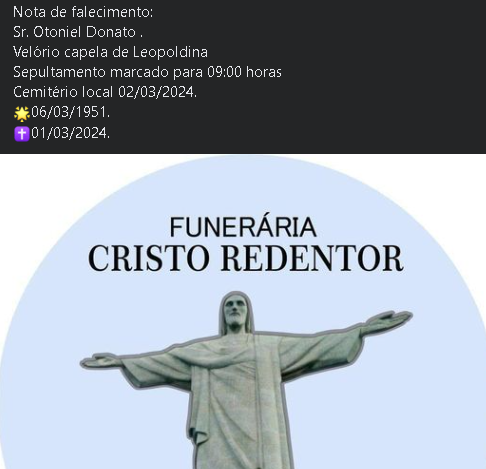 Comunicamos com pesar o falecimento de Otoniel Donato, de 72 anos.
