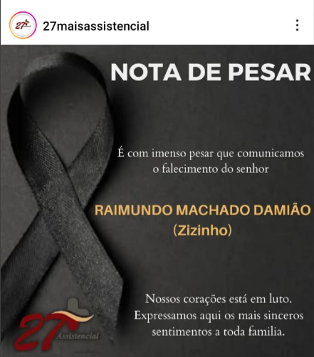 Comunicamos com pesar o falecimento de Raimundo Machado Damião (Zizinho).