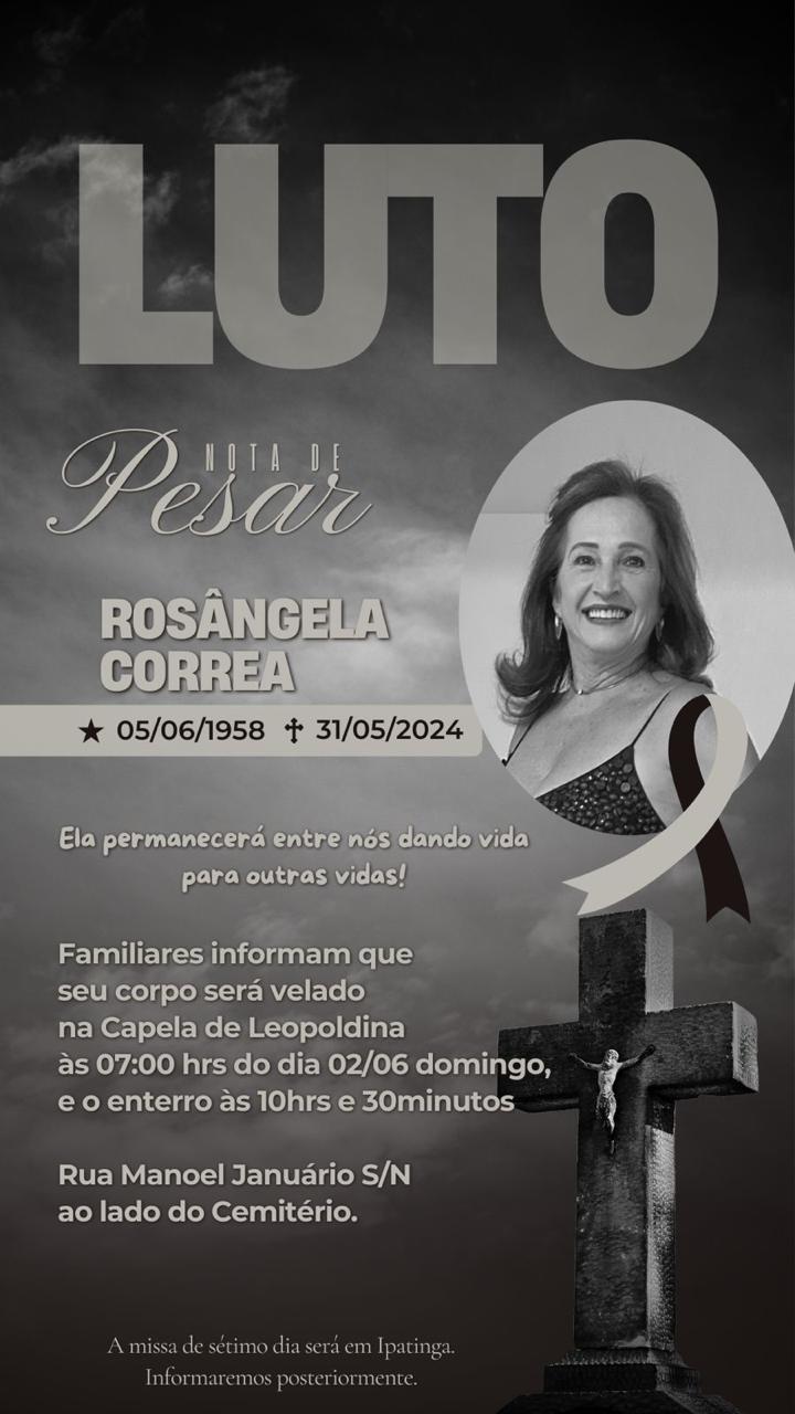 É com profundo pesar que comunicamos o falecimento de Rosângela Correa de Almeida, de 65 anos.