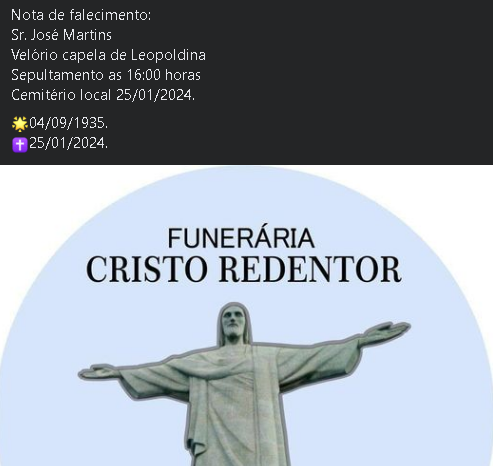 Comunicamos com pesar o falecimento do Sr. Jose Martins.
