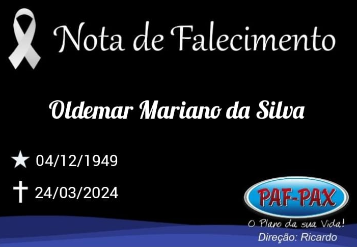 Comunicamos com pesar o falecimento do Sr. Oldemar Mariano da Silva, de 74 anos.